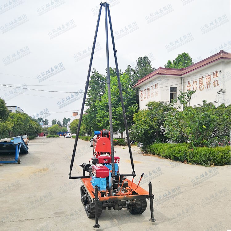我廠生產(chǎn)的BZ-50SL型鉆機(jī),是在50系列鉆機(jī)的基礎(chǔ)上升級(jí)改造的,解決了傳統(tǒng)小型液壓鉆機(jī)鉆桿短,鉆進(jìn)時(shí)需要反復(fù)提鉆下鉆的作業(yè)模式,該機(jī)型新增了履帶底盤,減輕了用戶的轉(zhuǎn)場(chǎng)負(fù)擔(dān),提高了作業(yè)效率,鉆桿取芯鉆具等放在底盤上,發(fā)動(dòng)機(jī)器就可以轉(zhuǎn)場(chǎng)了,同時(shí)增加了移機(jī)功能,鉆桿長(zhǎng)度達(dá)到2米,鉆塔高度4.5米,精簡(jiǎn)了作業(yè)流程,換桿不需要拆卸牛頭,提升了鉆進(jìn)速度。
