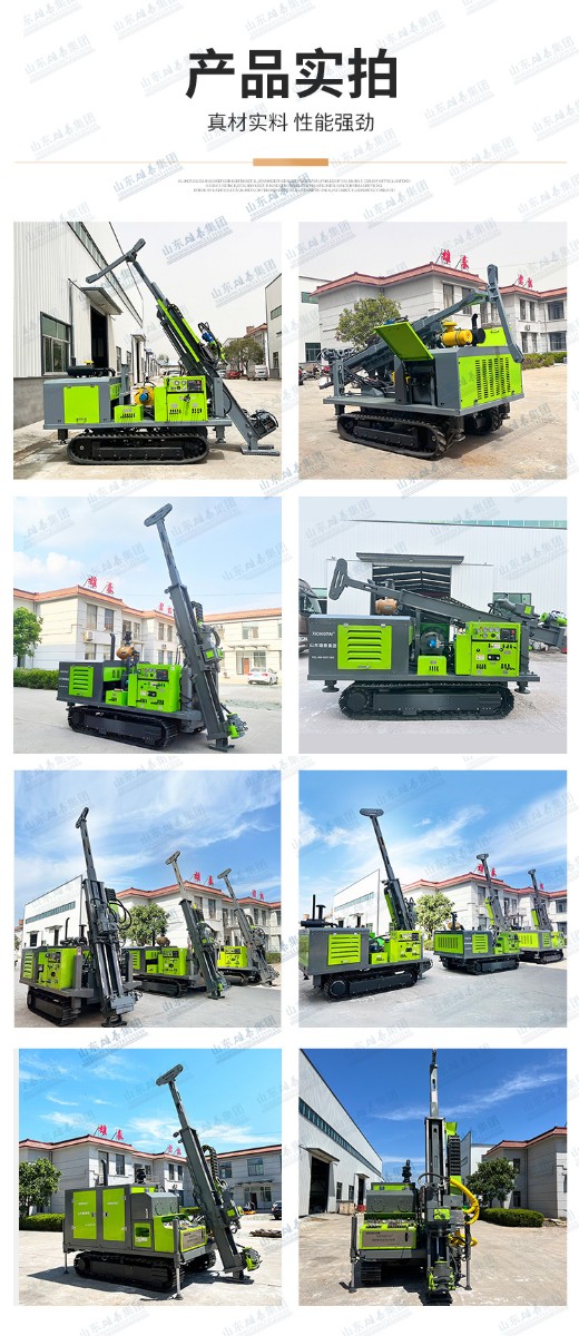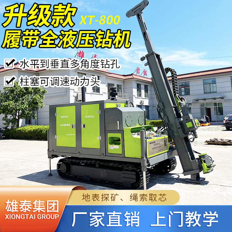 山東雄泰集團自主研發(fā)生產(chǎn)的履帶式全液壓鉆機的無線遙控行走、液壓桅桿自動升起,動力頭自動左側(cè)移機提鉆為該款鉆機一大特色。其中桅桿自動升起,動力頭移機為我公司實用新型專利,極大緩解了現(xiàn)場施工的難度,有效減小了鉆機施工人數(shù),節(jié)約了成本,該履帶式全液壓鉆機分別采用76KW/115KW發(fā)動機,動力強勁,扭矩大,適用于各類復(fù)雜地層的金屬礦開采。
